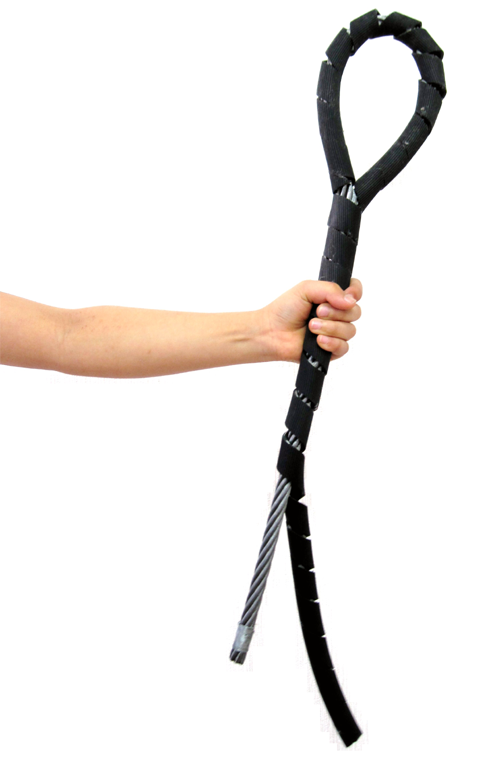 手編み加工の長所を取り入れ、ロープを組み合わせた上から圧縮加工を行うことで、アイ部にかかる荷重が均等で金具に与える応力も無理が無い。