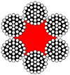 - 6ストランドにくらべて、ストランドおよび素線の径が細く、心材の径が大きい構造になっている。