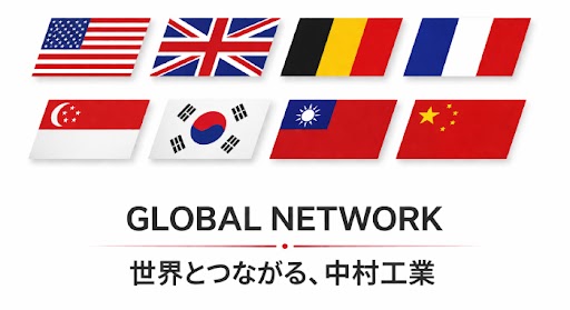 中村工業は、日本国内にとどまらず、世界各国のトップメーカーや専門業者と強力なパートナーシップを築いています。