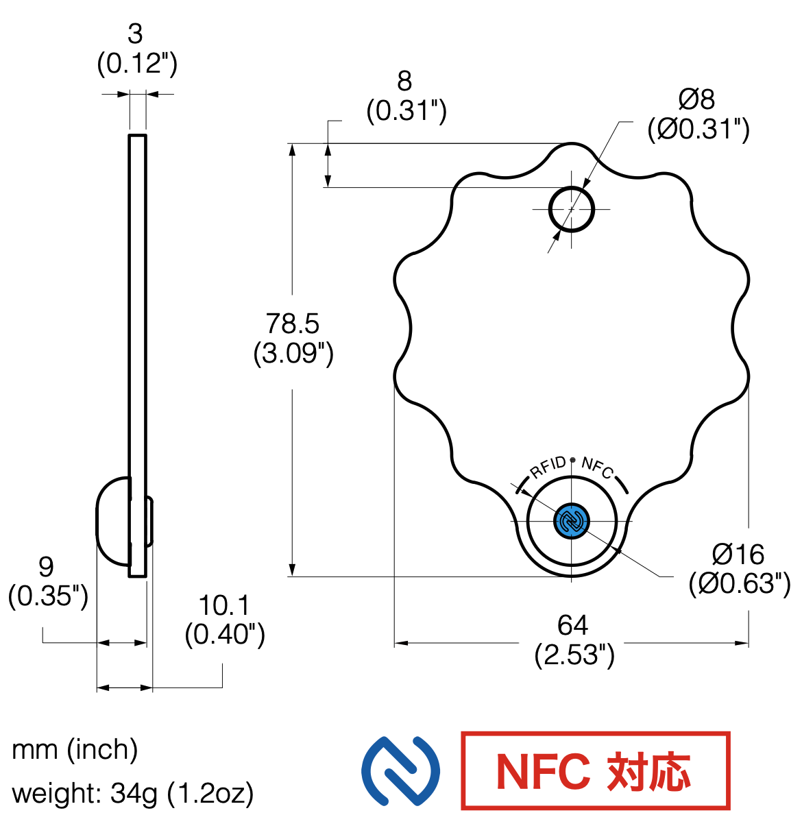 | 動作周波数 | HF - 13.56 MHz | |